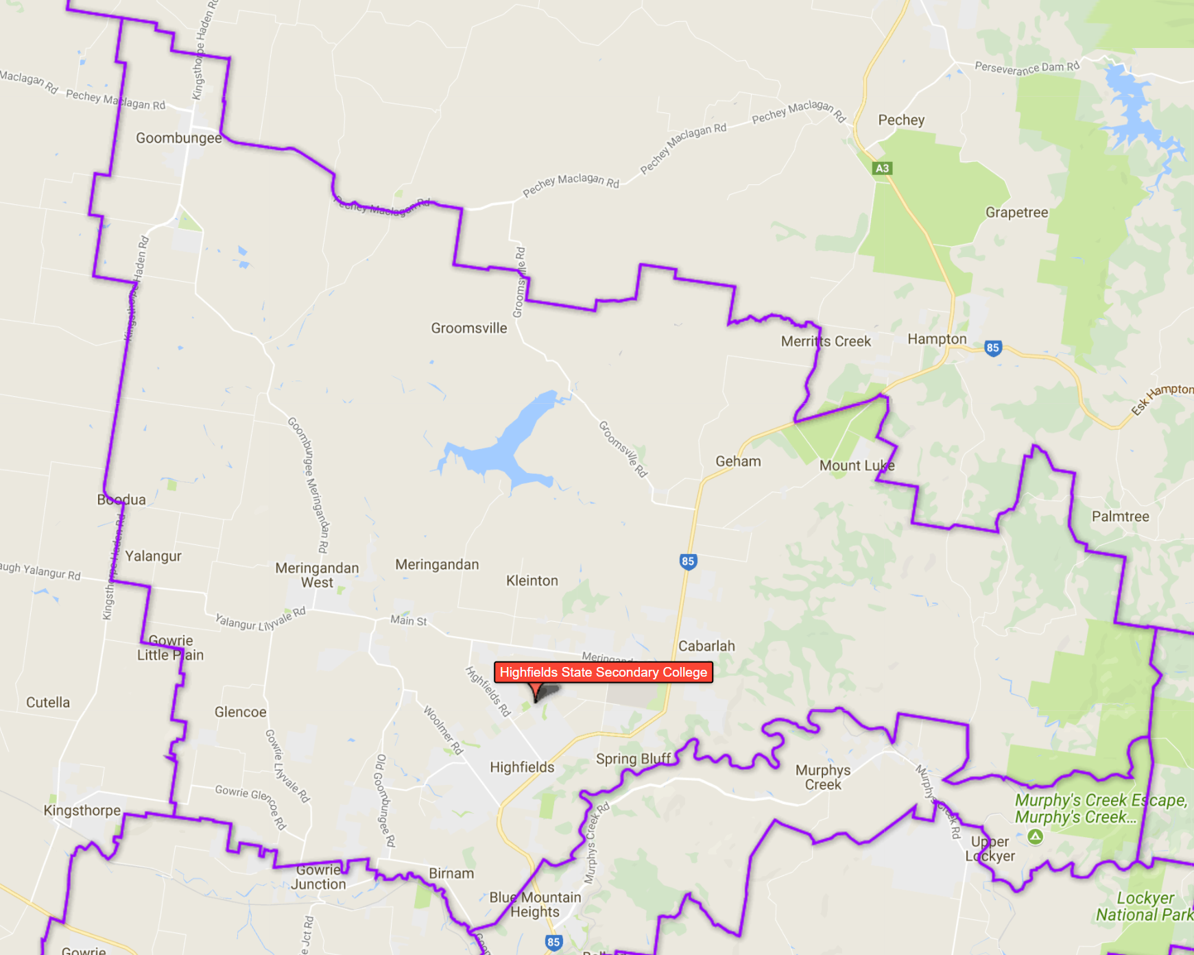 Click the image below to open up the Queensland Government EDMap which outlines the catchment areas for which Highfields State Secondary College can accept student enrolments.
